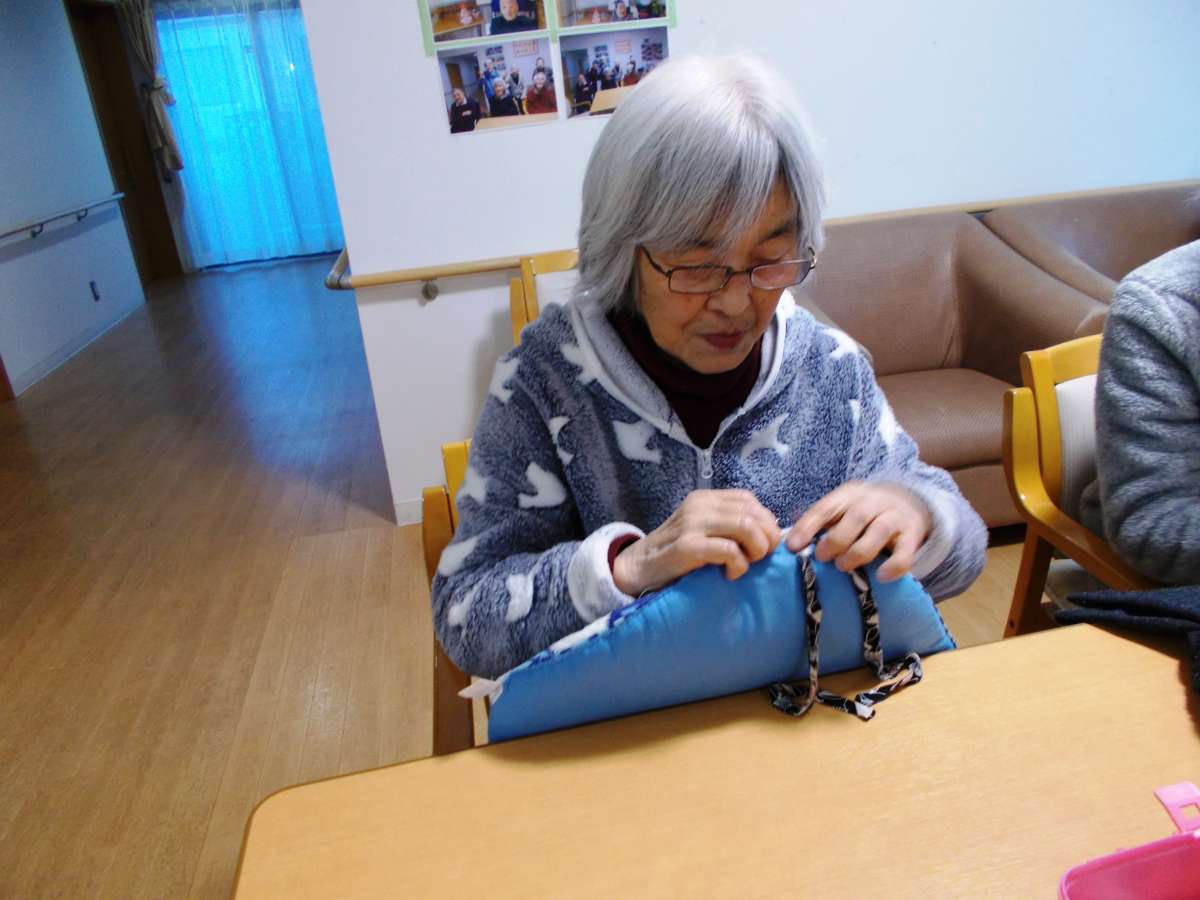 もくもくとちぎれたクッションのひもを縫い付けてくださっています。(感謝)