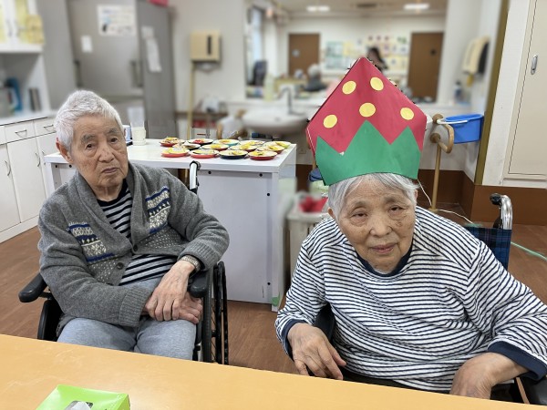 南中丸では今度のレクに向けて準備中!いちごのパフェにちなんで、かわいい帽子を作っちゃいました♡
