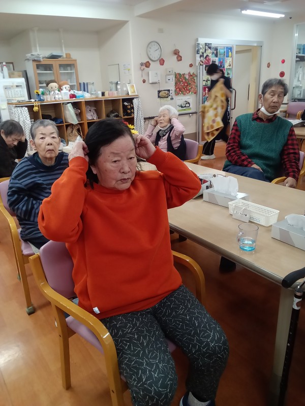 おやつの前に少し時間があったので、手指の体操と歌を歌ってからおやつとなっています。
