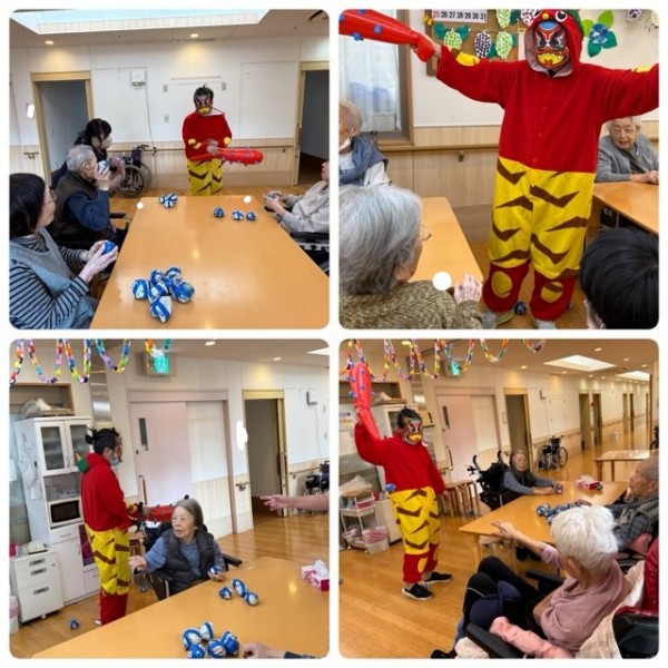 皆様鬼が登場すると、「鬼は~外」とまめに見立てた玉を頑張って投げていました(≧▽≦)