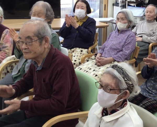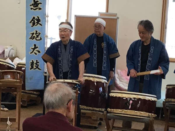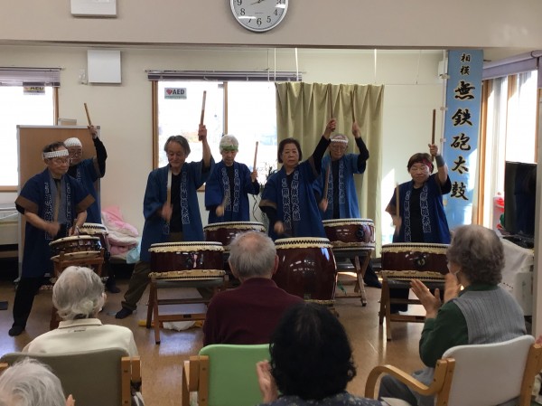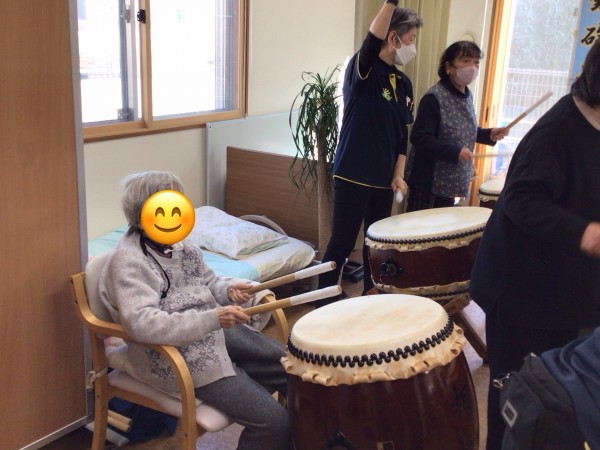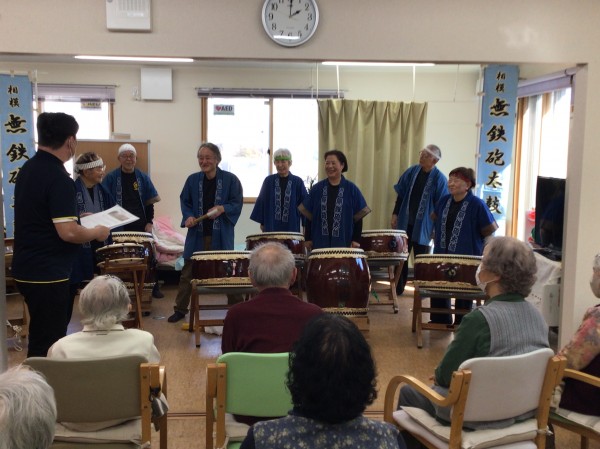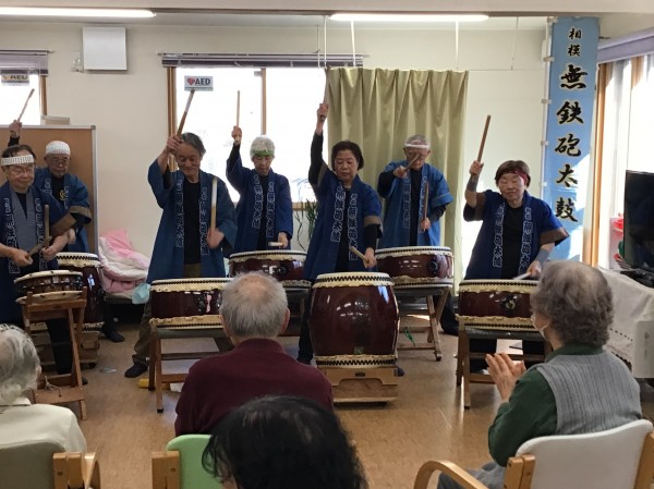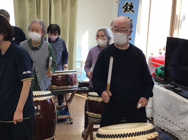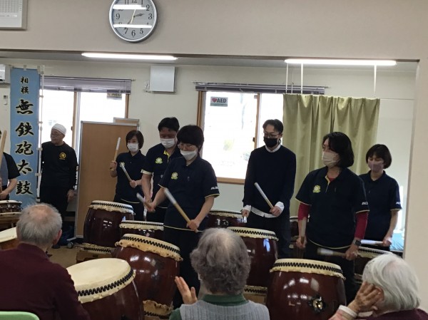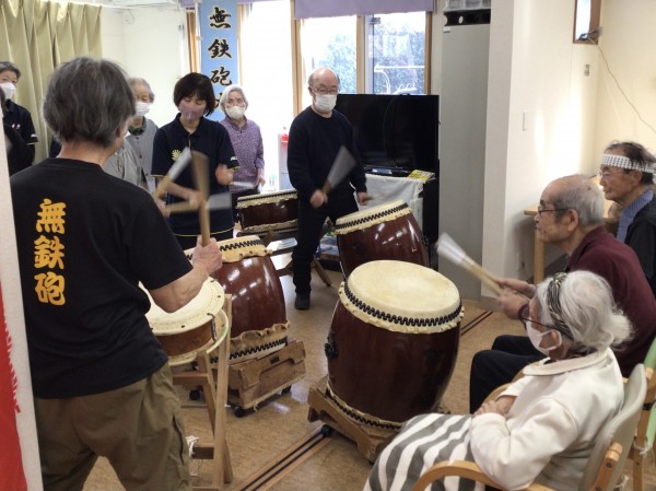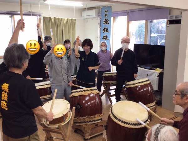 かたくりの里相模台のご利用者の皆さんに太鼓を叩いてもらう!