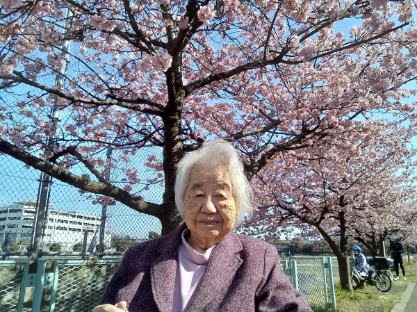 満開の桜を前に、表情もパッと華やいでいらしゃいました。