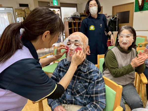 お顔のスキンケアにハンドマッサージお肌ツルツル潤ったところで口紅とアクセサリーを付けてちょっとおめかし…写真をパシャリ!!せっかくなので額に入れてプレゼントさせていただきました。