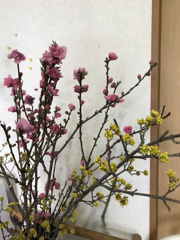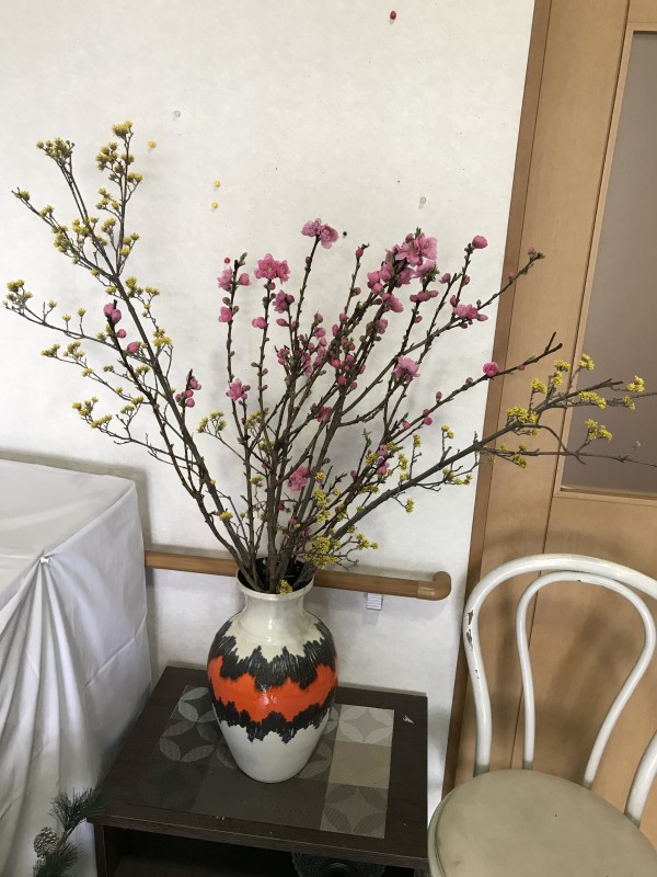 話は変わりますが、先日オーナー様より綺麗な花をいただきました!私事ですが、お花に疎いので名前が分からなかったのですが、黄色いほうが山茱萸(サンシュユ)ピンク色が花桃です!(調べました)ホーム近くにも咲いているので桃の花はわかりましたよ!黄色い方は菜の花と勘違いしちゃいましたが(笑)