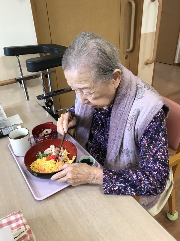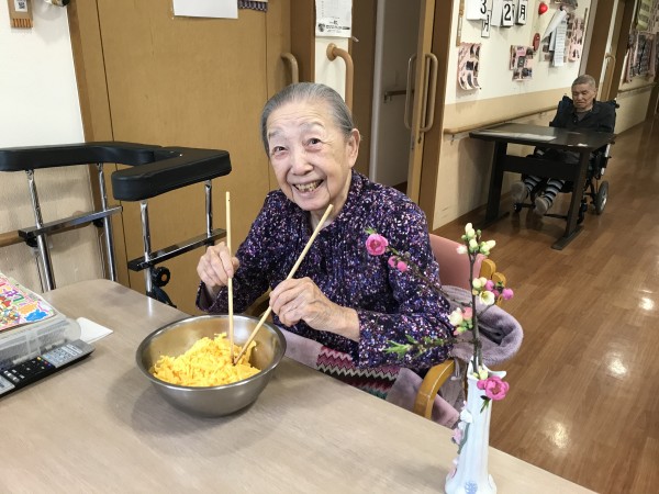 横浜三保2では、ひなまつりの行事食という事でちらし寿司とひなあられを食べました(╹ڡ╹ )