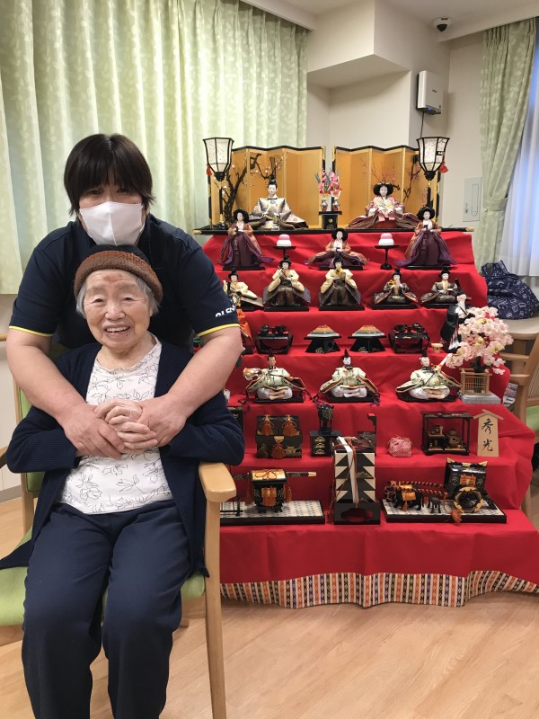 1階では7段飾りの立派なひな壇を飾りひな祭りをお祝いしました(^-^)