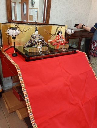 丁寧に梱包を剥がし、お雛さまたちを飾っていきます