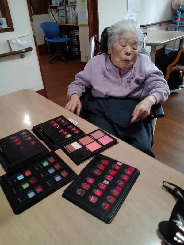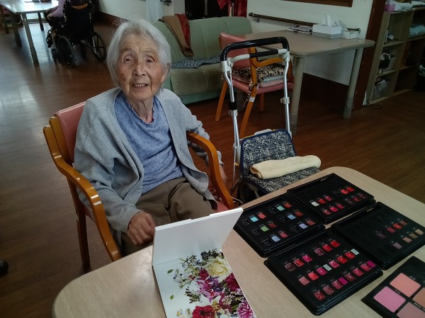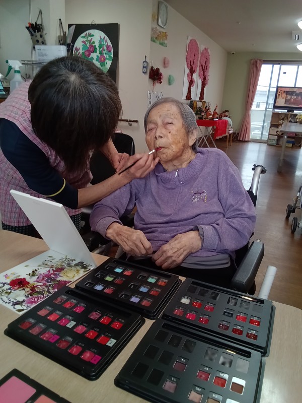 某大手化粧品会社にお勤めの経験があるスタッフにより、ご希望のご利用者様にお化粧をしていただきました。