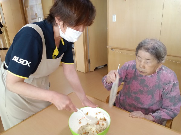 お雛様風のおにぎりを作った食レクの様子について紹介したいと思います。