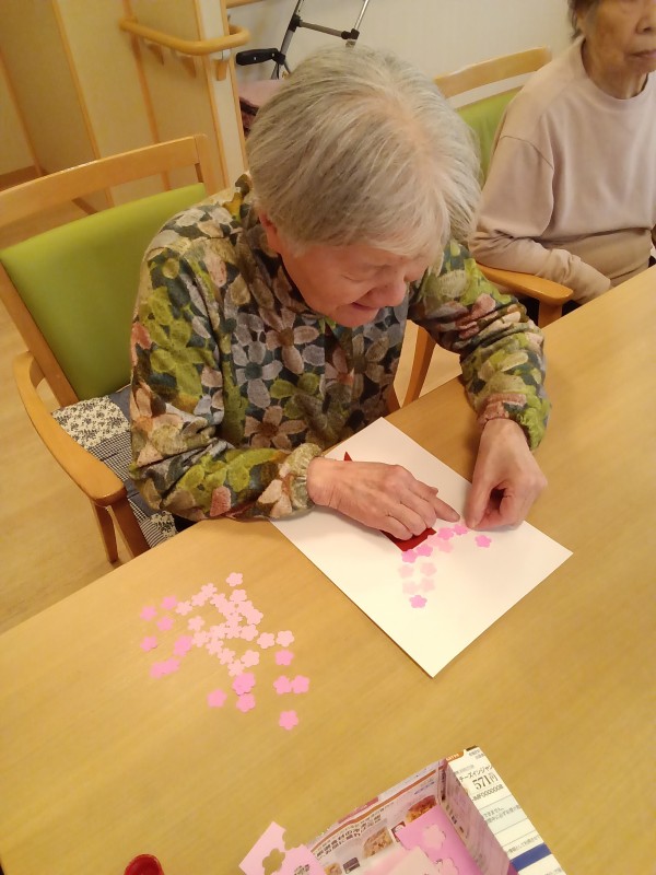 型抜いた桜の花びらを好きなように貼りました!