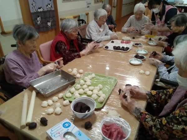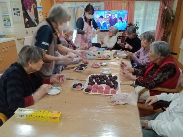 今年は2種類の味のぼたもちを作り、見た目も鮮やかで
