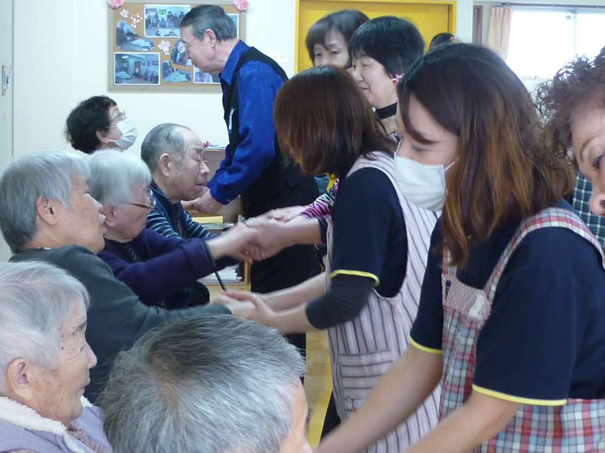 次は、夢のダンスのボランティアさんと、ご利用者様が、手を取り合って、フロア中に大きな声で