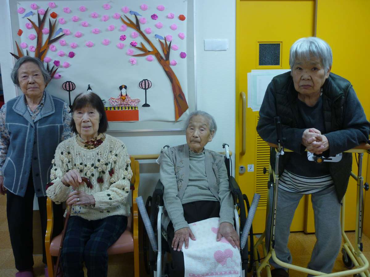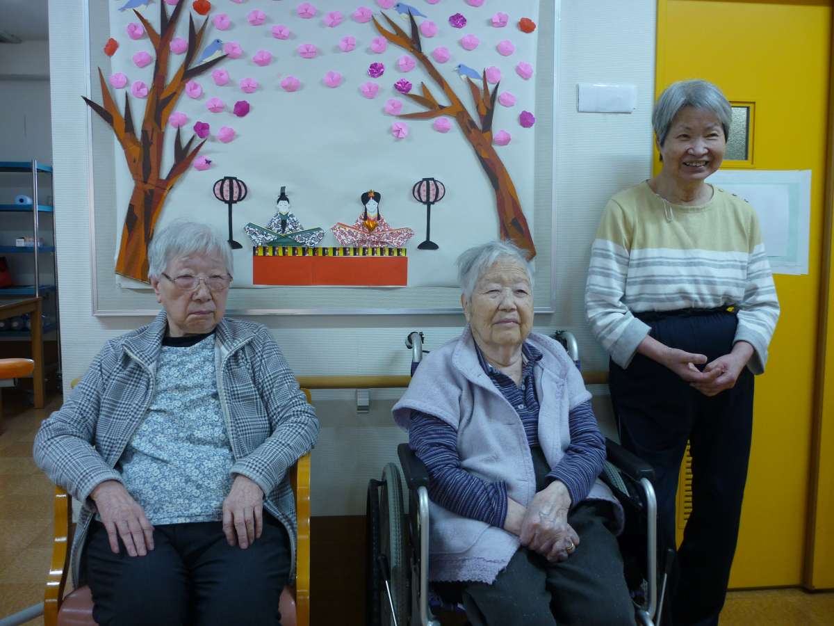 グループホーム戸田では、手作りのひな人形の前で皆様パチリ!!!