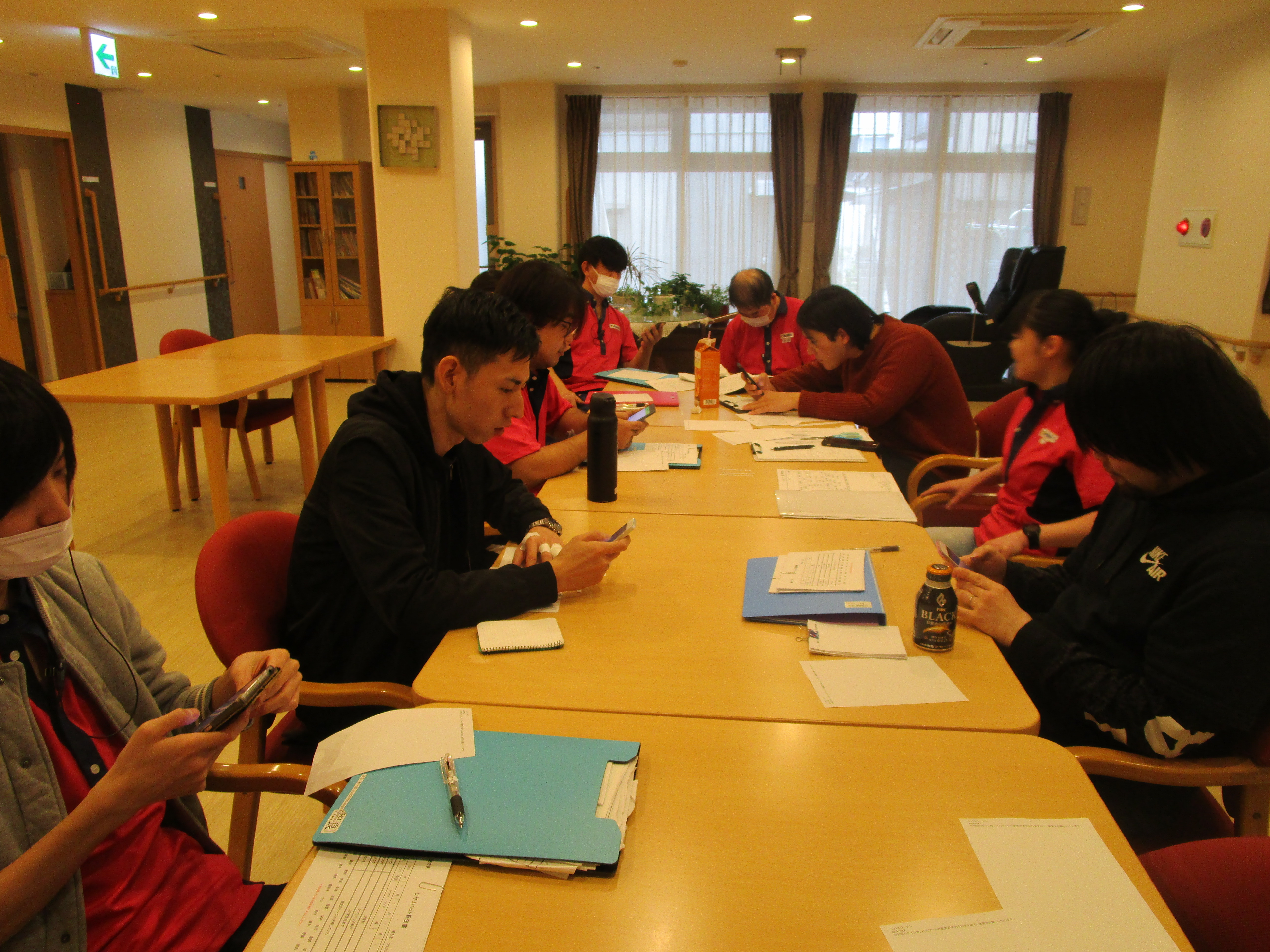 002 004 施設で行っている職員会議です。 お客様の事故を未然に防ぐ為に『ヒヤリハット』を記入し職員で周知します。 事故発生防止委員会が頑張っています。 職員の写真は、ラインワークス登録中です。業務連絡・職員間での連絡ツールとして活用します。 他、お客様の情報や、訪問介護での注意点など話し合いました。 有意義な会議になりました。