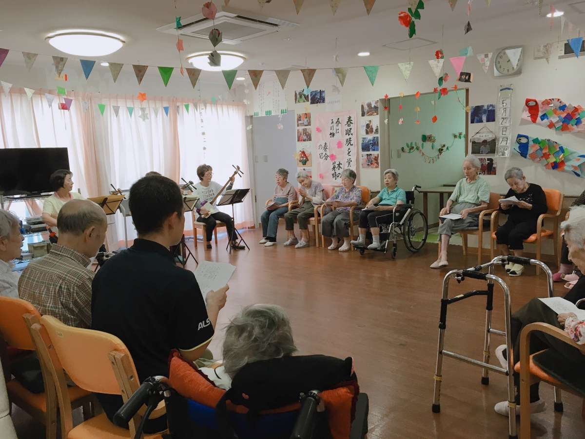 演奏に合わせて知ってる曲も知らない曲も歌詞カードを見ながら全員で歌いました