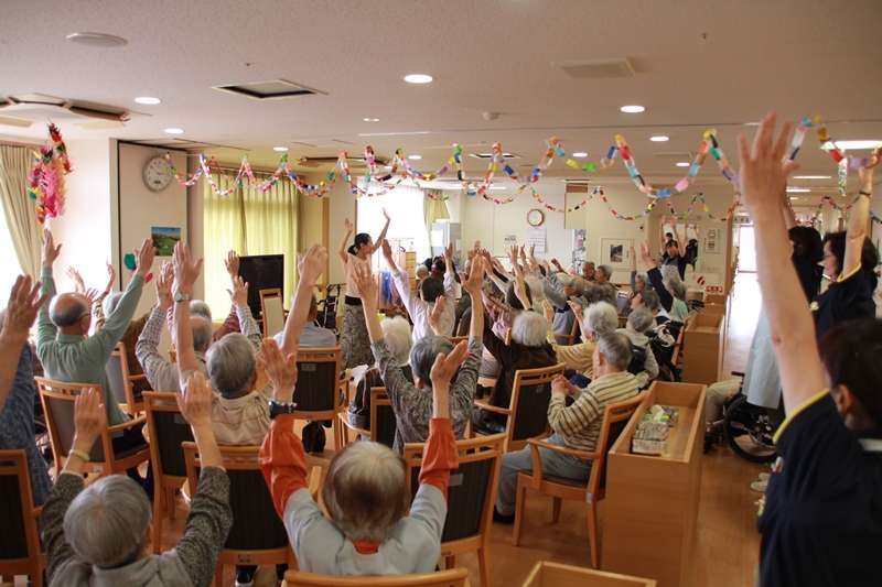 6月20日 木曜日 令和初のALSOKシニアヨガ をすこや家・西東京5Fフロアで開催しました。5Fで開催するのは久しぶりです。職員も久しぶりの準備に大わらわ。でも、そこはいつものチームワークの良さ、手際の良さであっという間に準備ができました。ご利用者様も一人、二人と連れ立って集まり会場は満員御礼です。