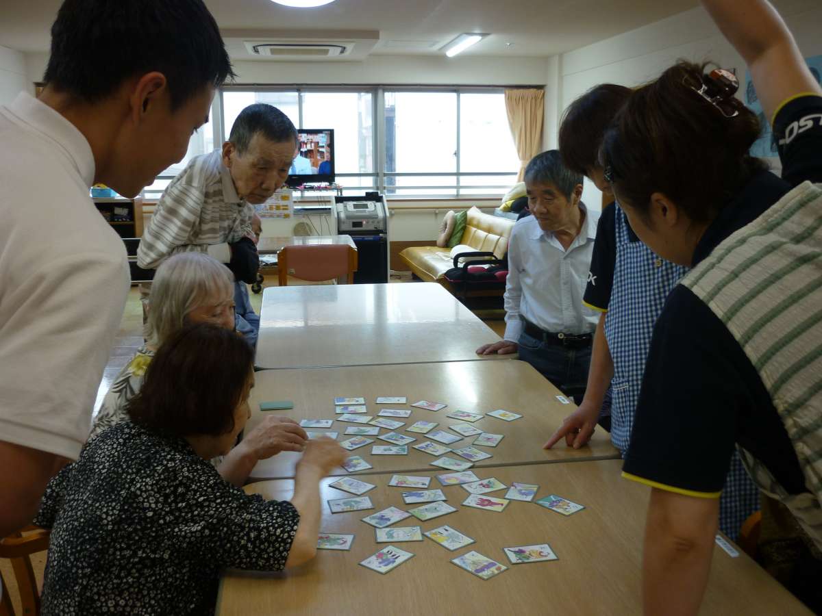 皆様、興味津々・・・男性の方も加わり、最後には、スタッフも加わり白熱した、かるた大会となりました!!