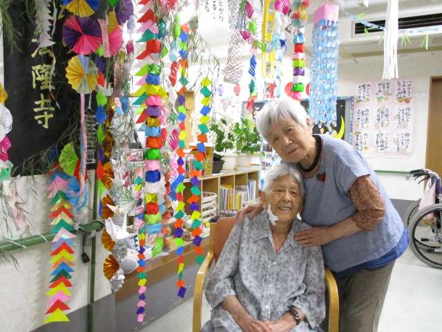 3階では6月から七夕飾りを入居者様にたくさん作って下さり、七夕一色となっています。