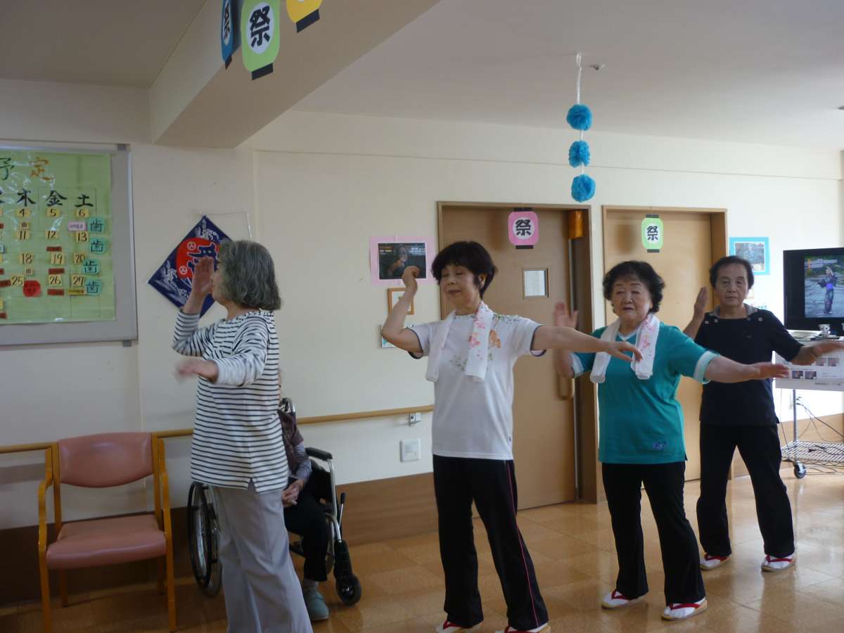 今日は、地域の方がホームに来て下さり、盆踊りの練習をしいい汗をかきました。