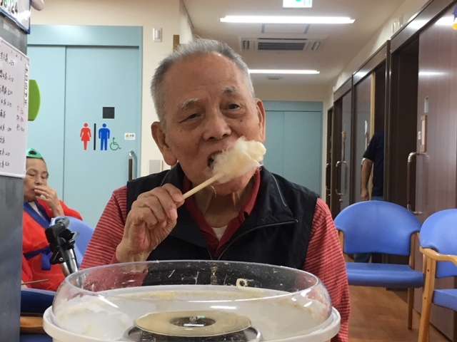 今年は、皆さん半被を着て、綿あめの道具でご自身で綿あめを作って