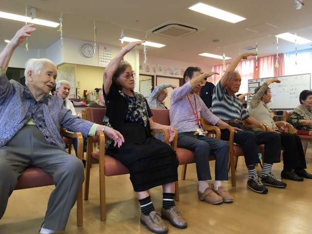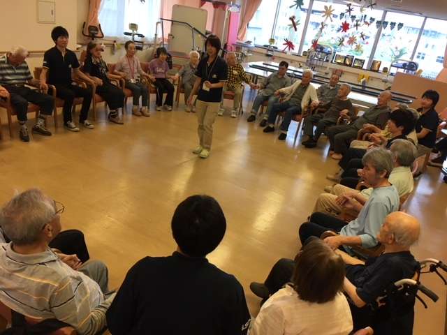 今日は、ご利用者24名全員で輪になり手をつなぎ、呼吸に集中し心を整えました。