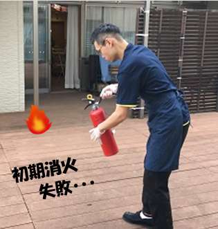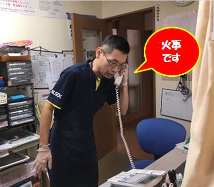 ウッドデッキの出火に気付き、2階に内線で知らせます!