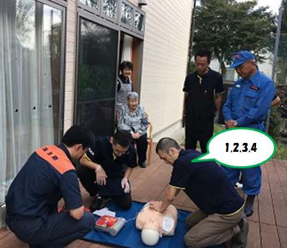「何やってるのかしら~」 と興味深々のご入居者様もおり、訓練を見守って下さりました!!