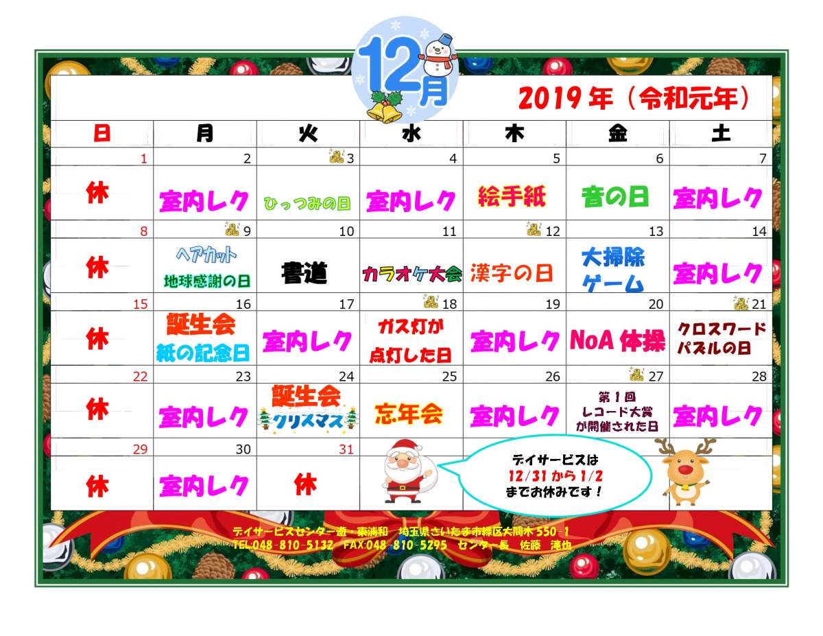 今月のレクリエーションの目玉は忘年会!!!