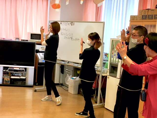 職員も、夢さんの仲間に混ざりながら前で一緒に楽しませていただきました(*^-^*)