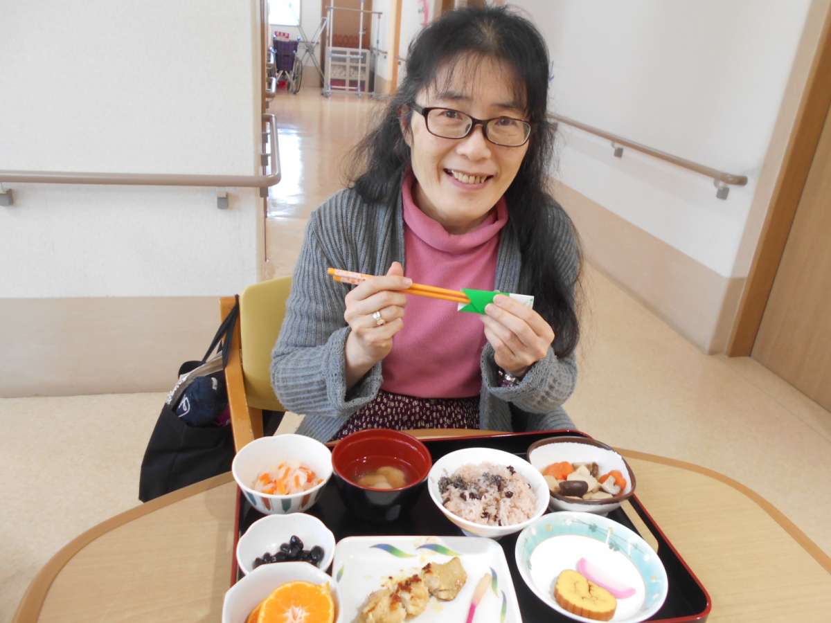 新年あけましておめでとうございます。グループホーム みんなの家・春日部花です 今年も健康に注意して過ごしたいと思います 元気な生活は食事から! 幸い食欲のない方はおらず、、、 祝い膳を前にして新しい年のはじまりです こちらはお正月の雰囲気を味わって頂くよう 職員が一工夫した箸入れです。 皆さん、喜んで下さいました ![]() |