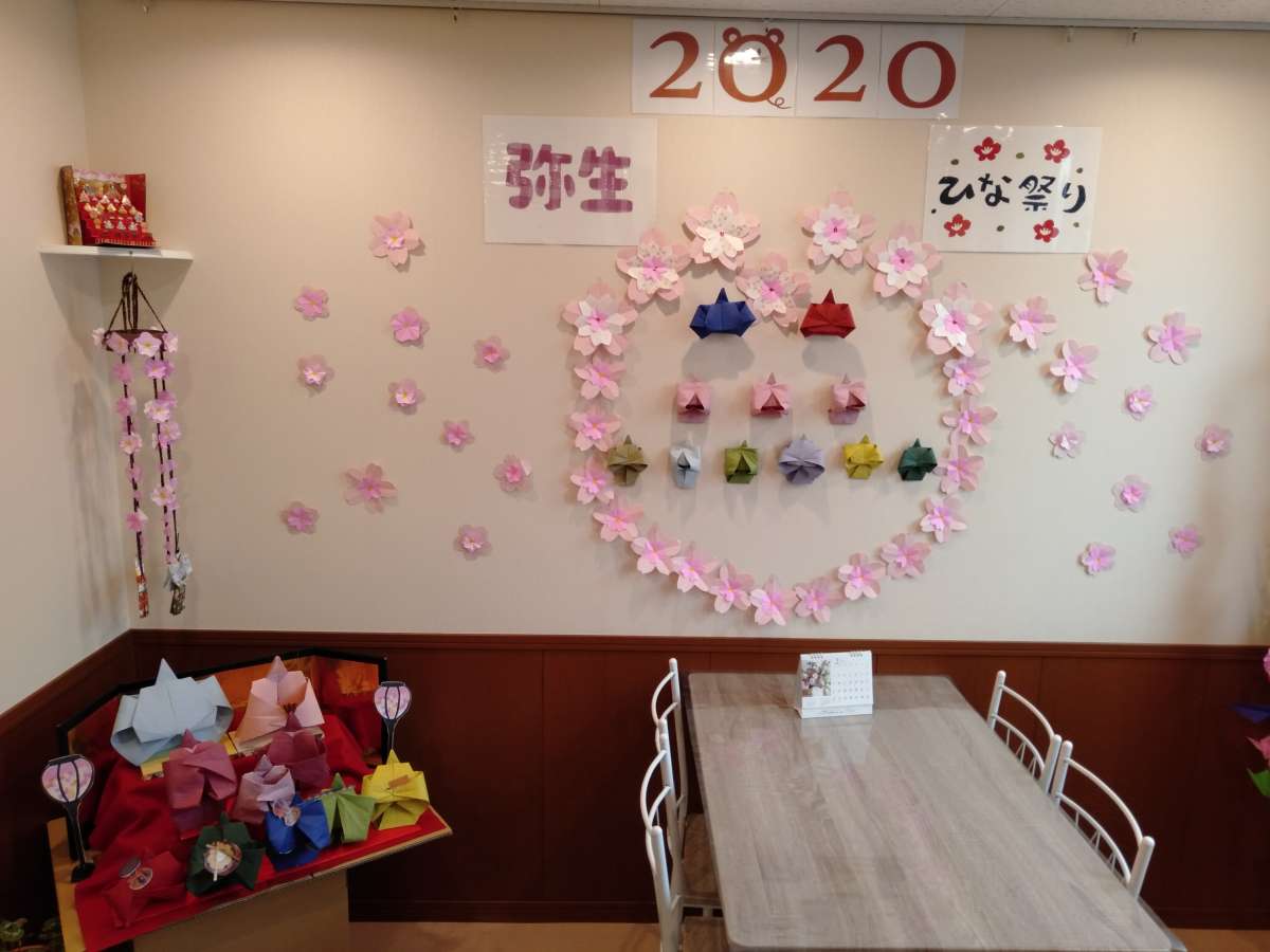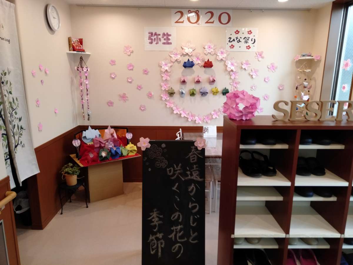 そんな中、ふだんは地域のコディネート活動や健康相談などをしている相談員のふたり(なおさん&まるさん)が交流スペースに春らしい装飾を施してくれました。