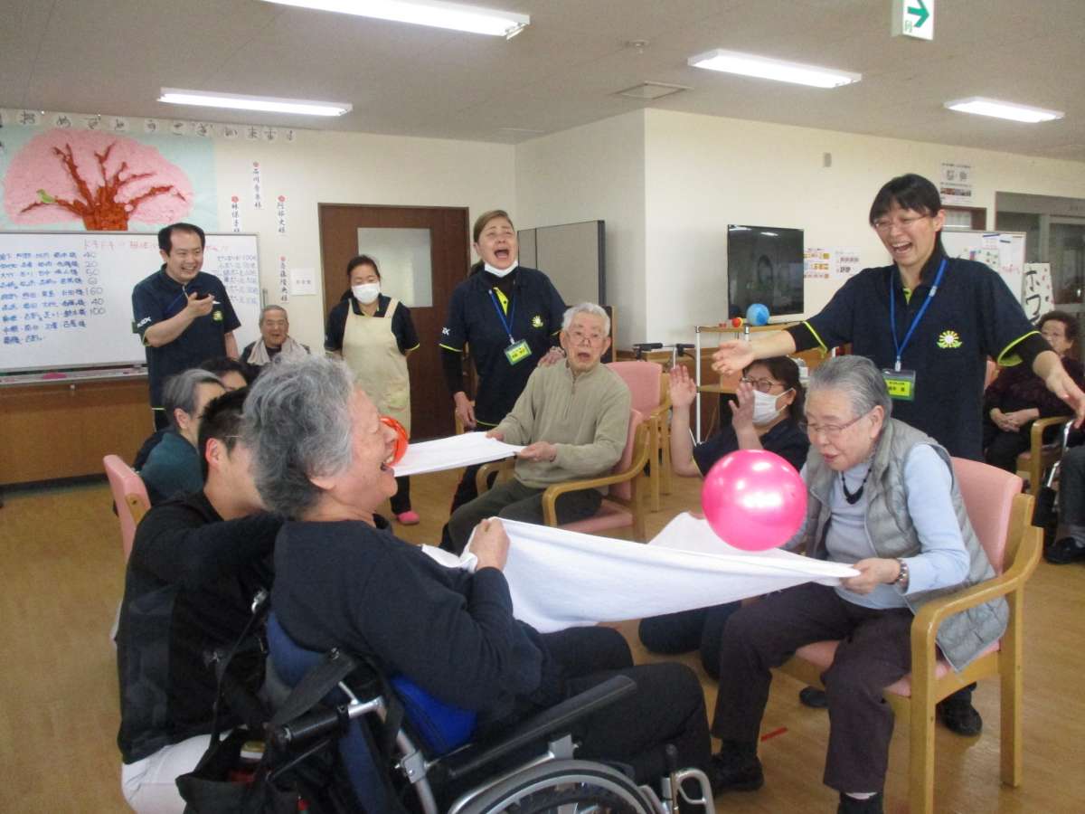 ひな祭りでは毎年恒例のスタッフによるひな壇組体操を披露させて頂きました。