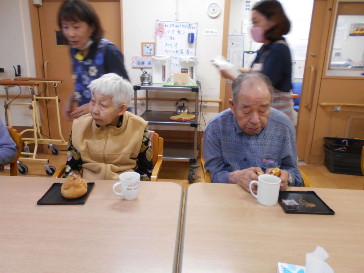 シュークリームときんつばで、お祝いをしました。皆様いい笑顔です(^^♪