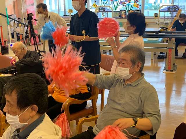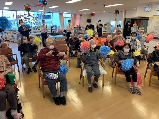 最後に、演奏していただいた感謝の気持ちを込めて、練習したボンボンのウェーブを行いました!