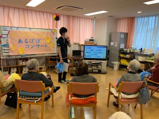 1曲目、「オーシャンゼリゼ」から始まり、毎日デイで行っている「ALSOKあんしん体操」を演奏していただき、