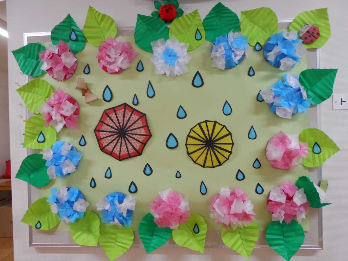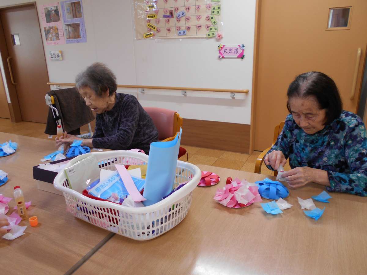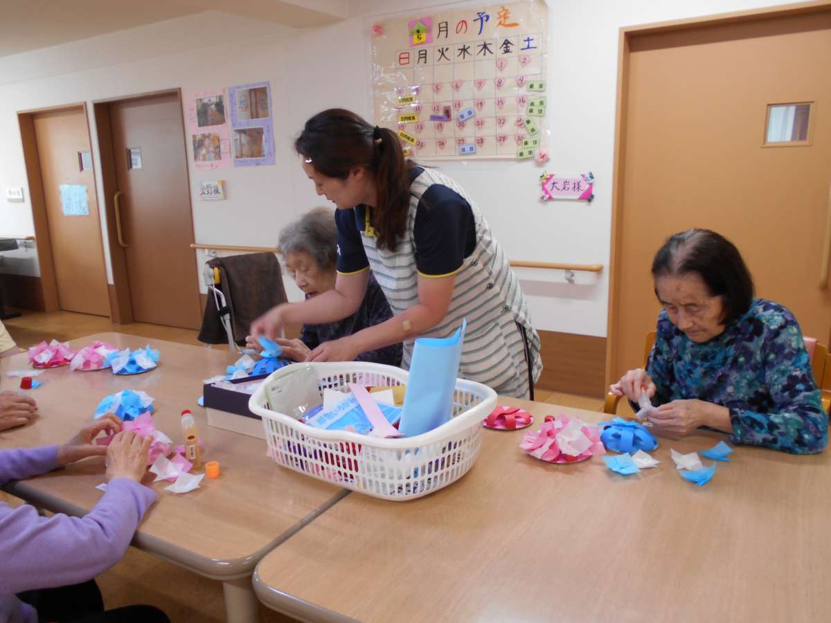 桜フロアのご利用者様と、スタッフで、いっぱい紫陽花を作って下さいました。
