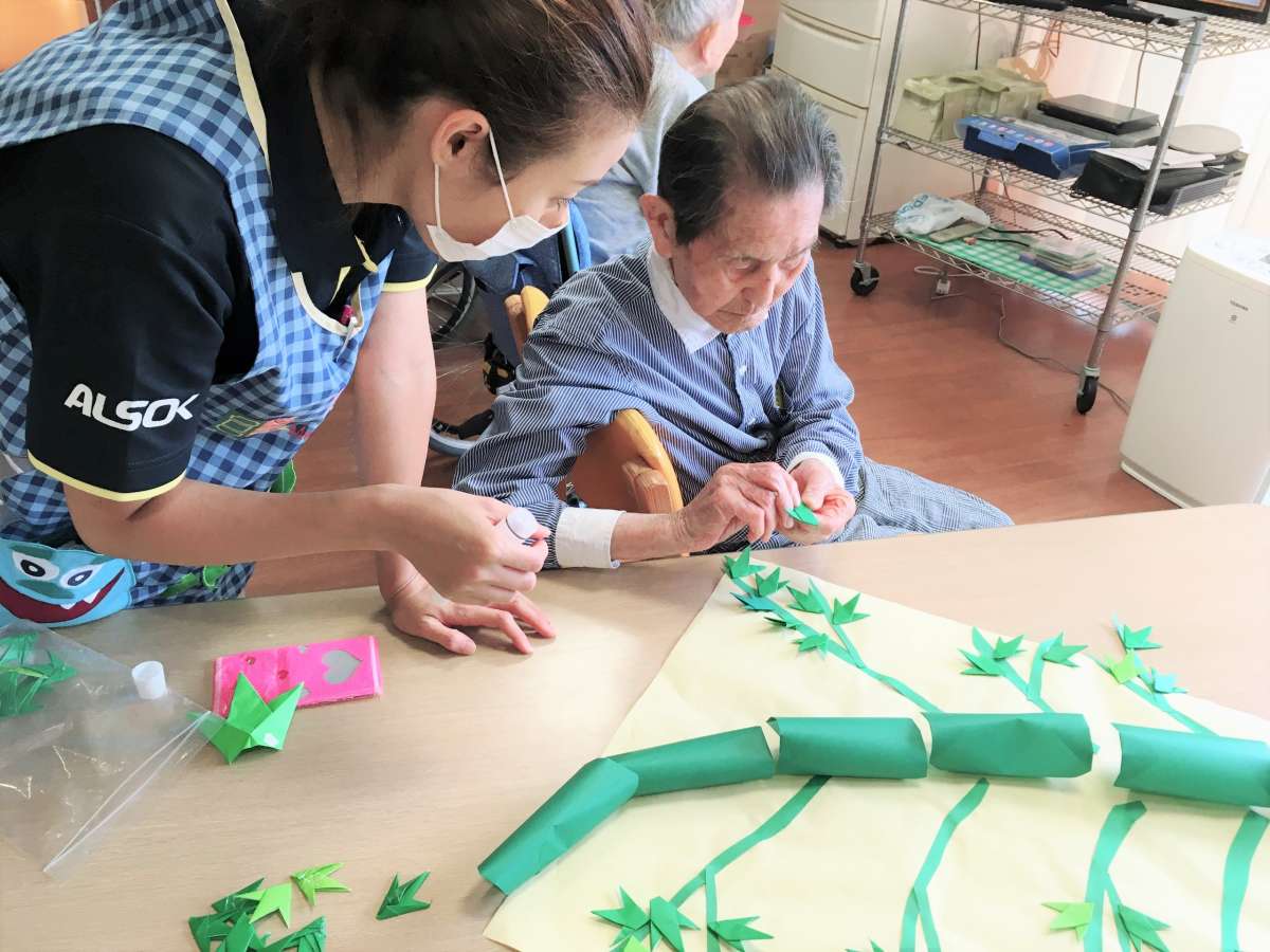 皆様と笹の葉に飾り付けをすることに!