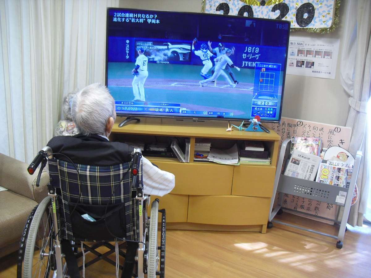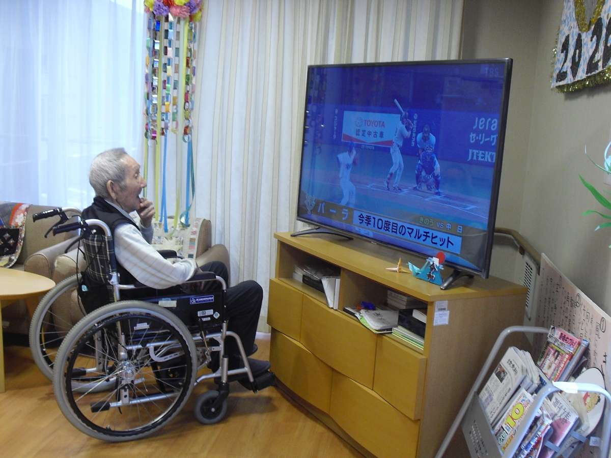 テレビの前まで来て見入っているご様子のご利用者様や
