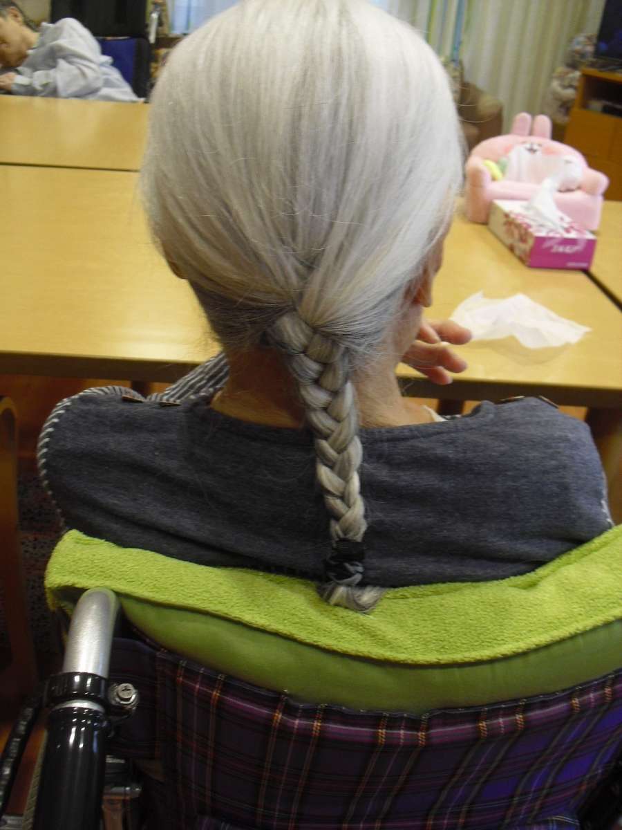 ご利用者様の髪の毛を結って下さっているご様子です(*^-^*)