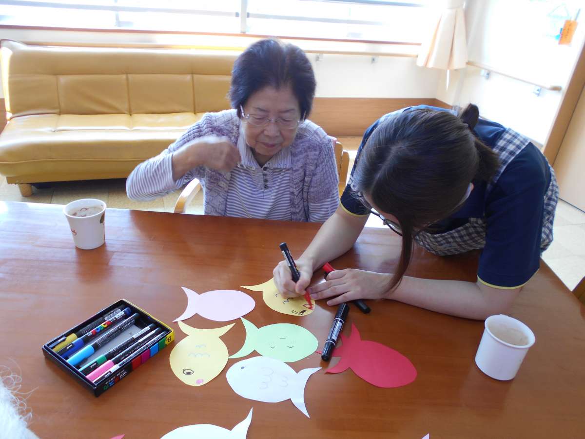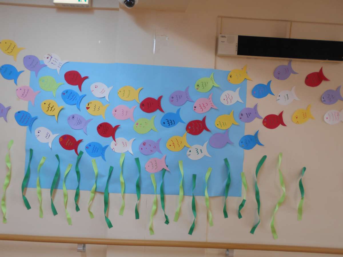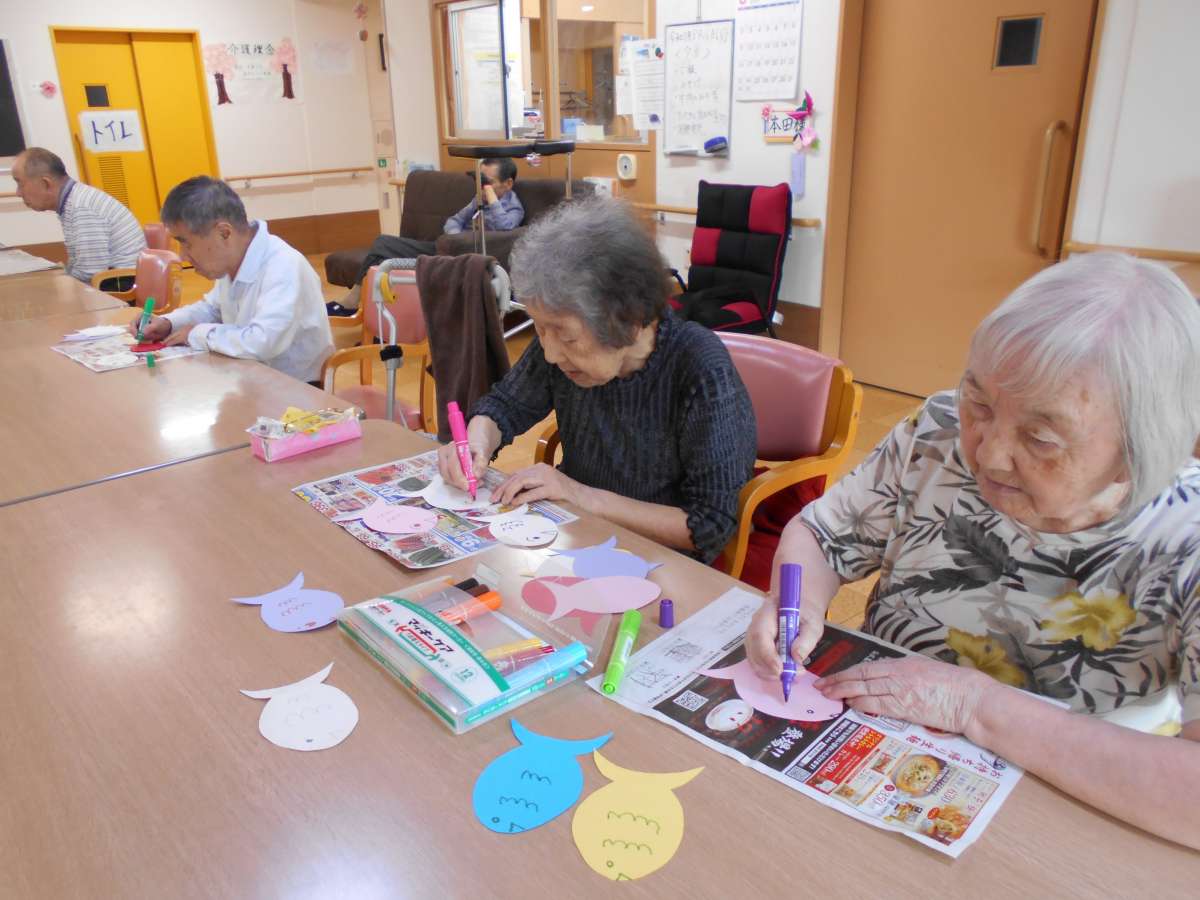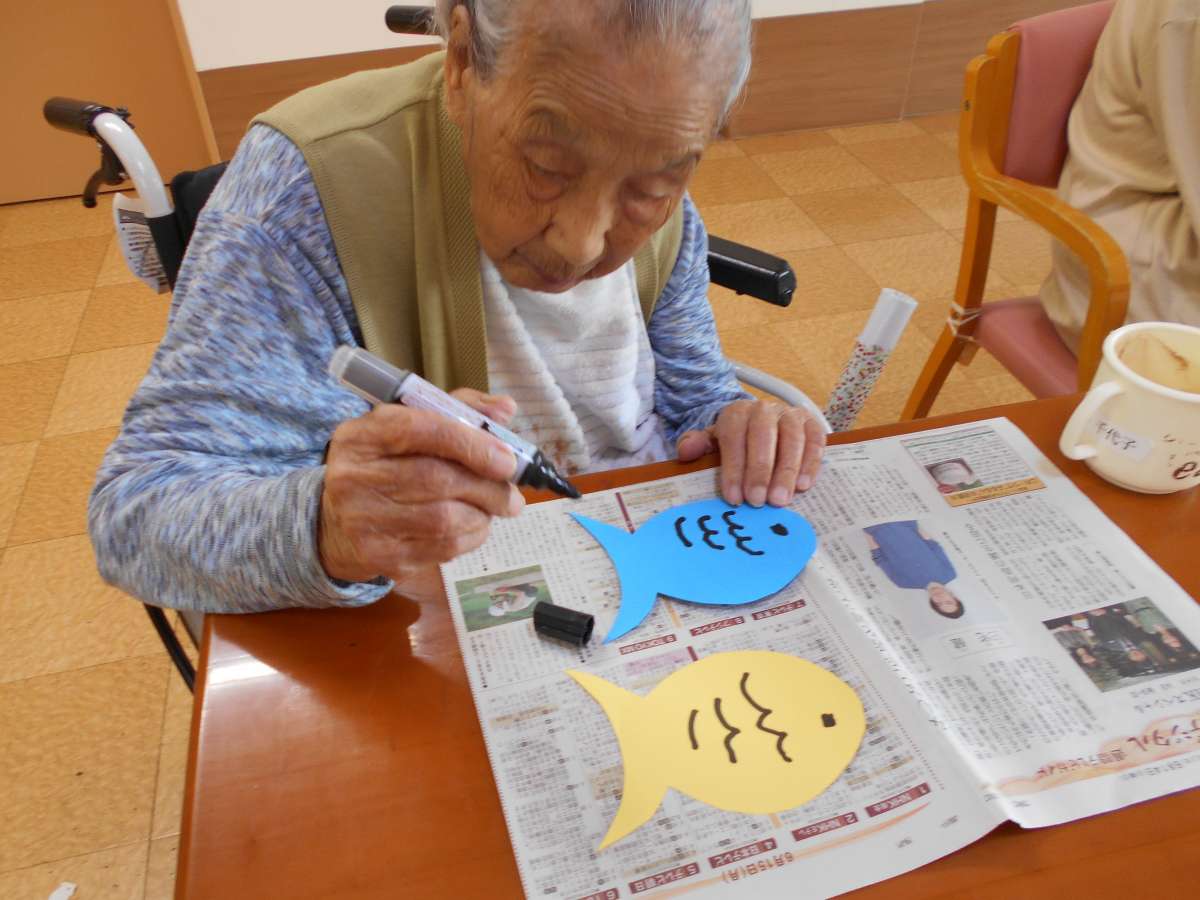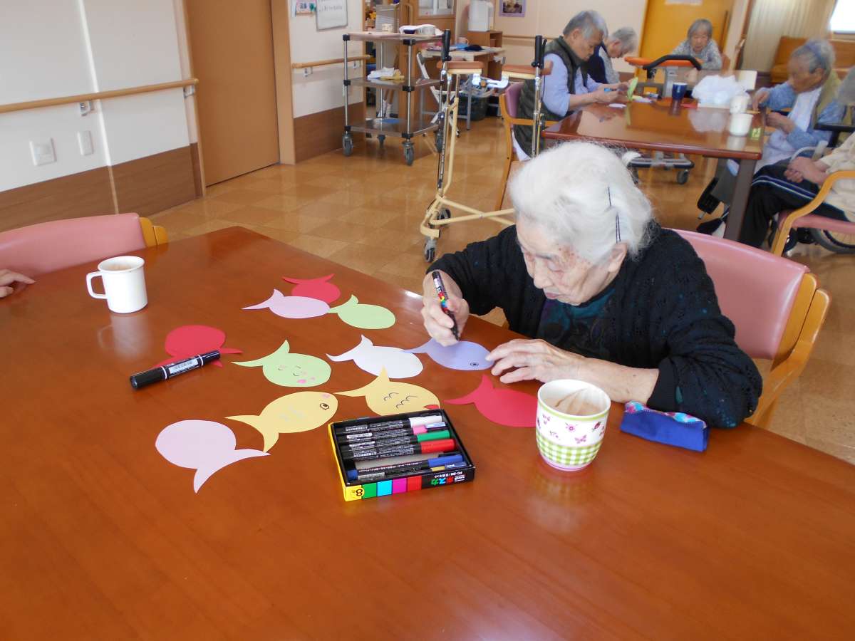 桃フロア、桜フロアのご利用者様とスタッフで、お魚を書いて頂きました(#^.^#)