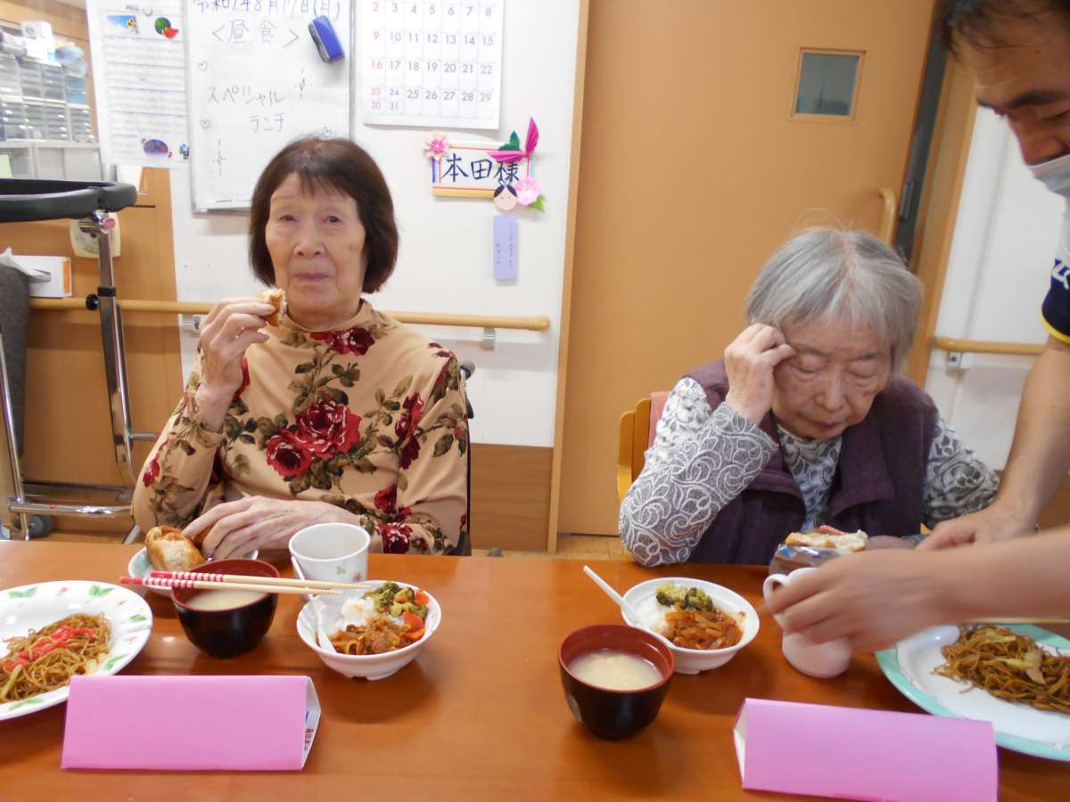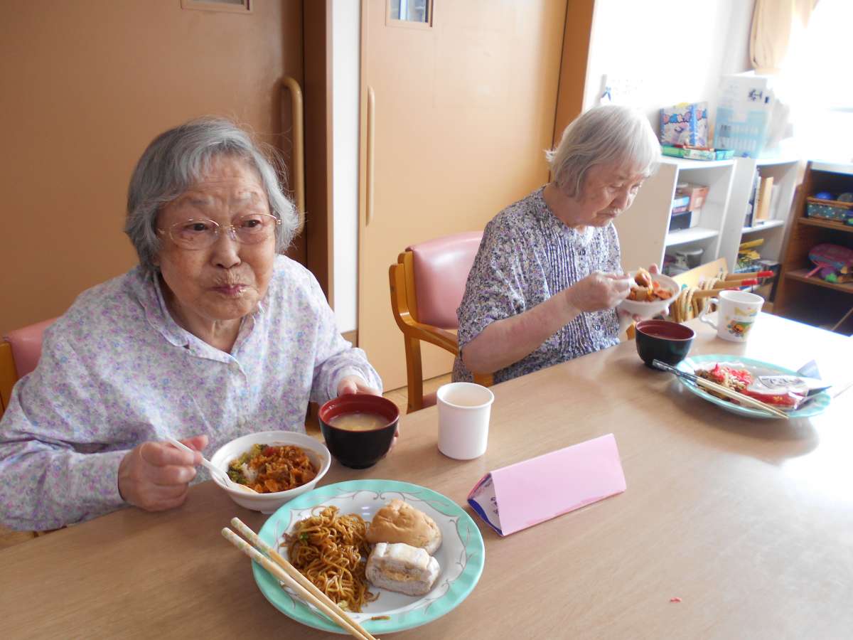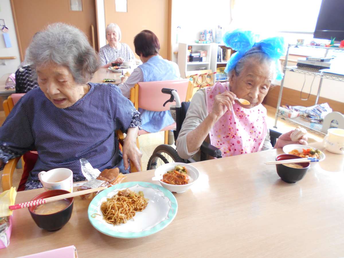 きよしのズンドコ節を踊った後は、スタッフ手作りの焼きそば、カメイさんのハヤシライス、パン、食後のデザートにかき氷を