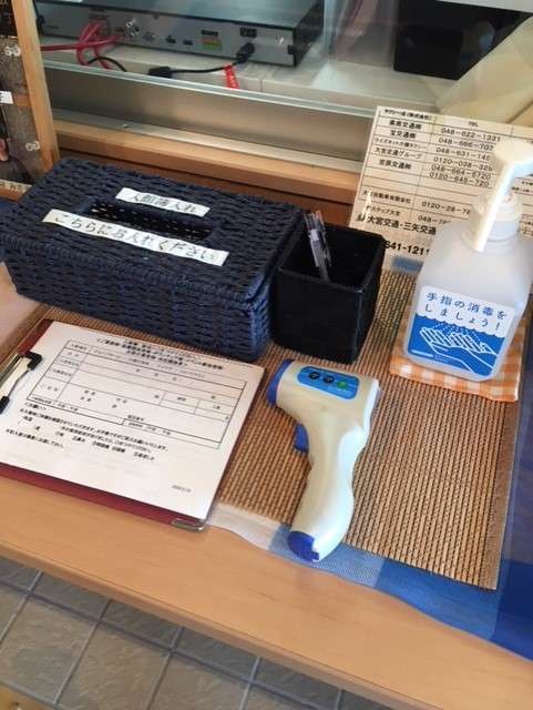 写真の通り、出勤時には手洗い・うがい・消毒・検温を