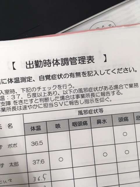 同様の対応をとっています。施設長、相談員が職員の体温をチェック