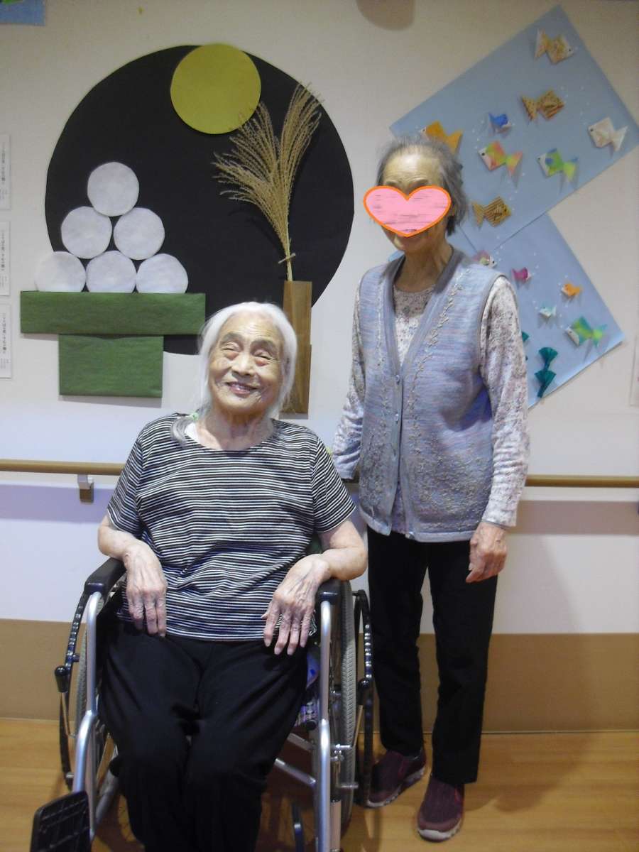 職員が作った十五夜をバックに記念撮影をおこないました(*'▽')!