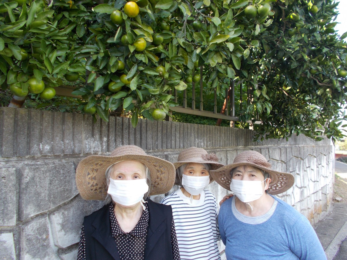すこし遠くまでお散歩する時はマスクをします。