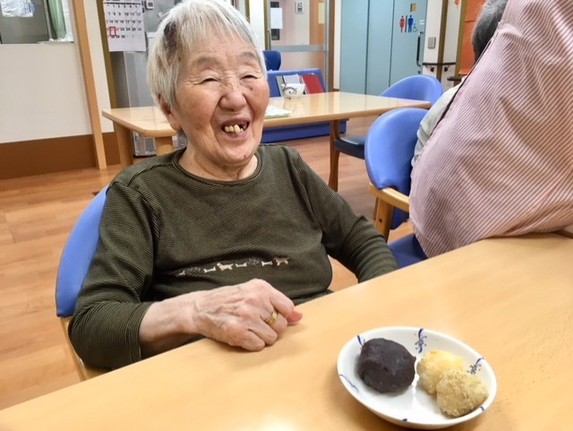 敬老の日のおやつに待望の「おはぎ風」作りを楽しまれました。
