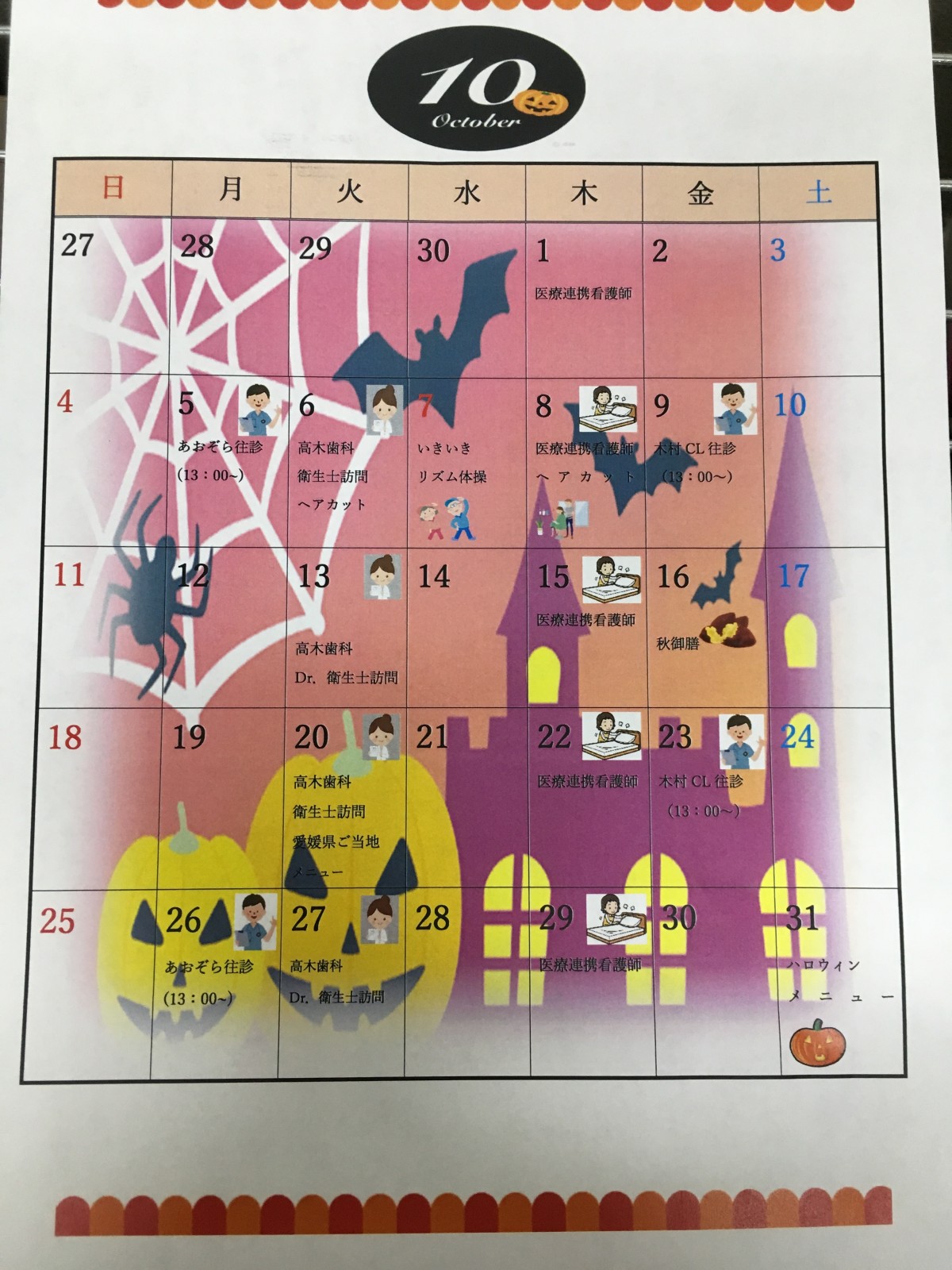 遅ればせながら、10月の行事カレンダーをアップさせて頂きます。