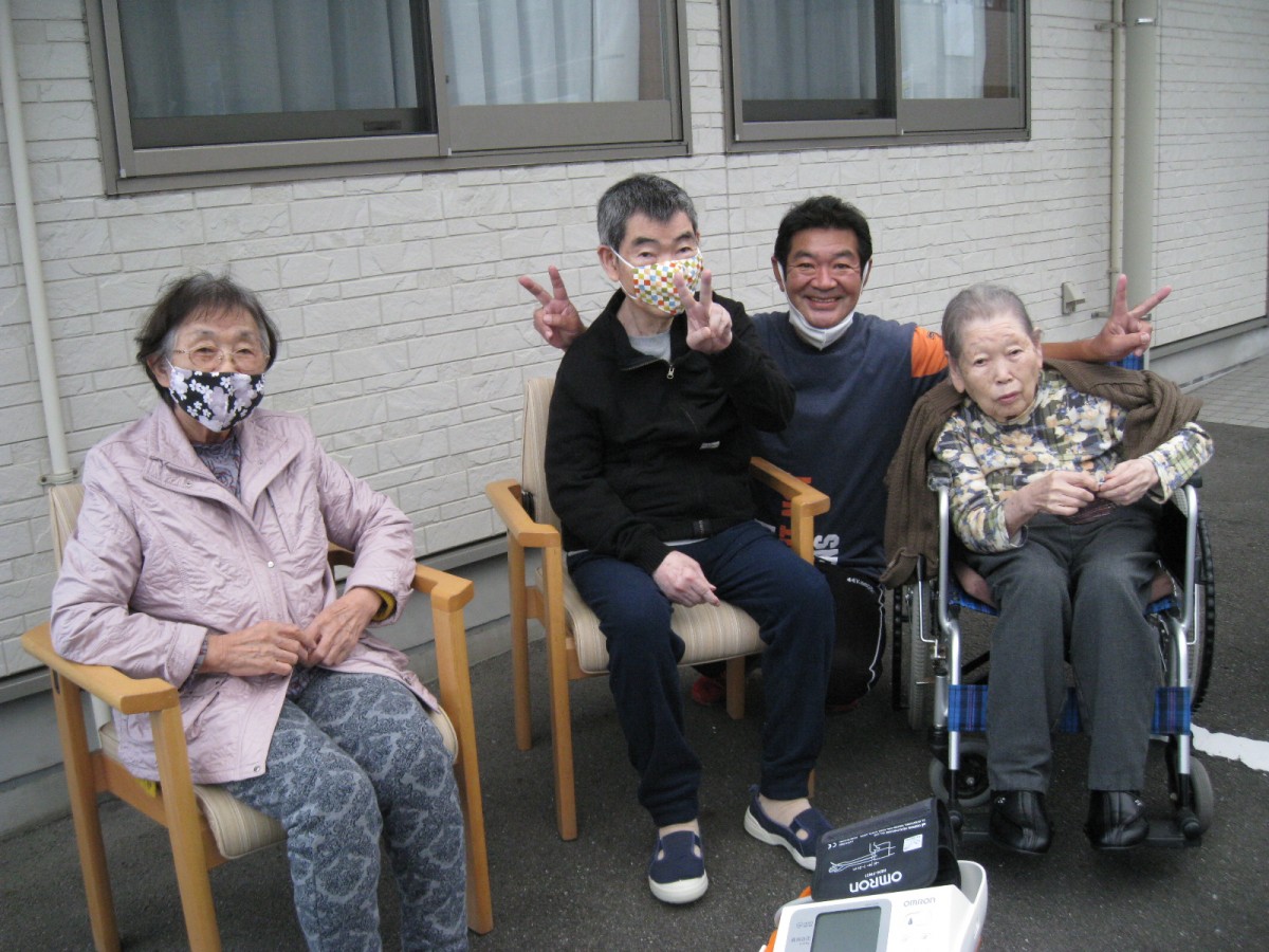 お茶を持って行き、唄や体操、はたまた周辺散歩を行いました。