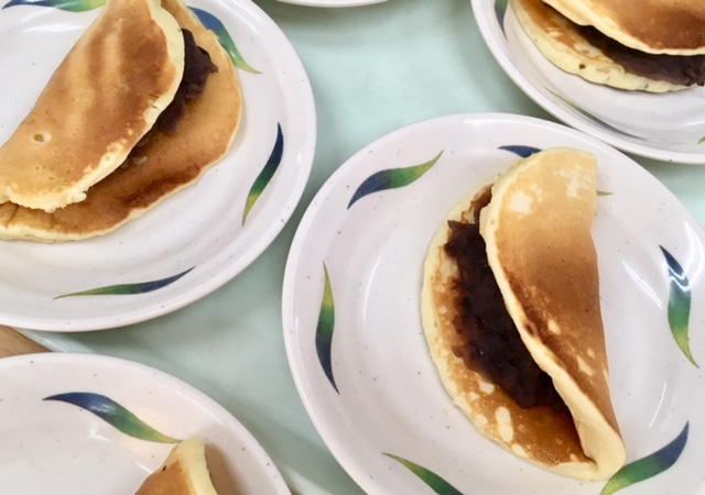 今日は、ホットケーキミックスであまーい香りをさせて焼きま~す。