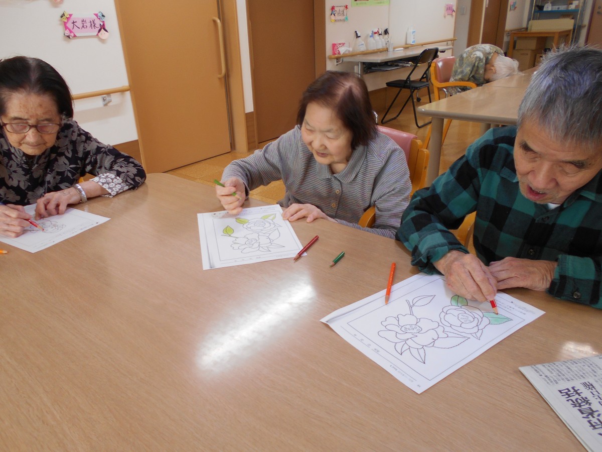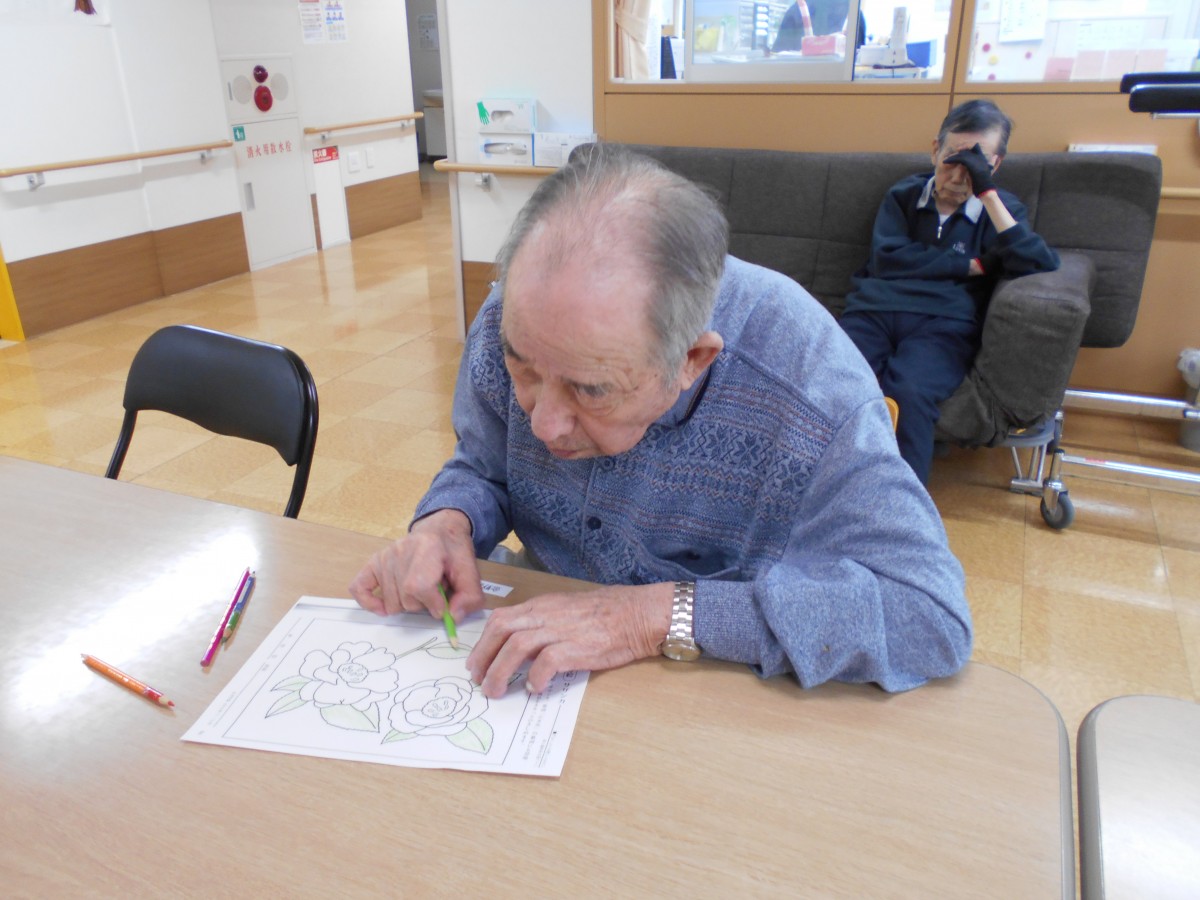 グループホームみんなの家戸田では、男性のご利用者様も、もちろん!!女性のご利用者様も大好きなぬり絵レクをされているご様子です!(^^)!